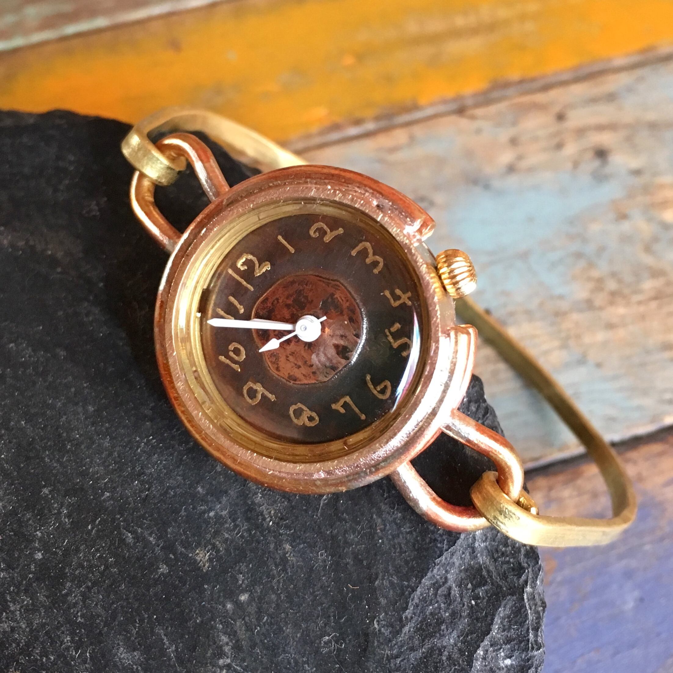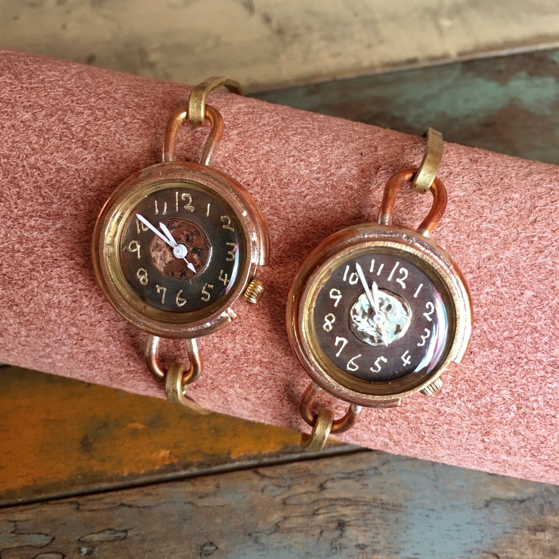 文字盤中央の金属が違います(上の画像:銅 下の画像:真鍮)
