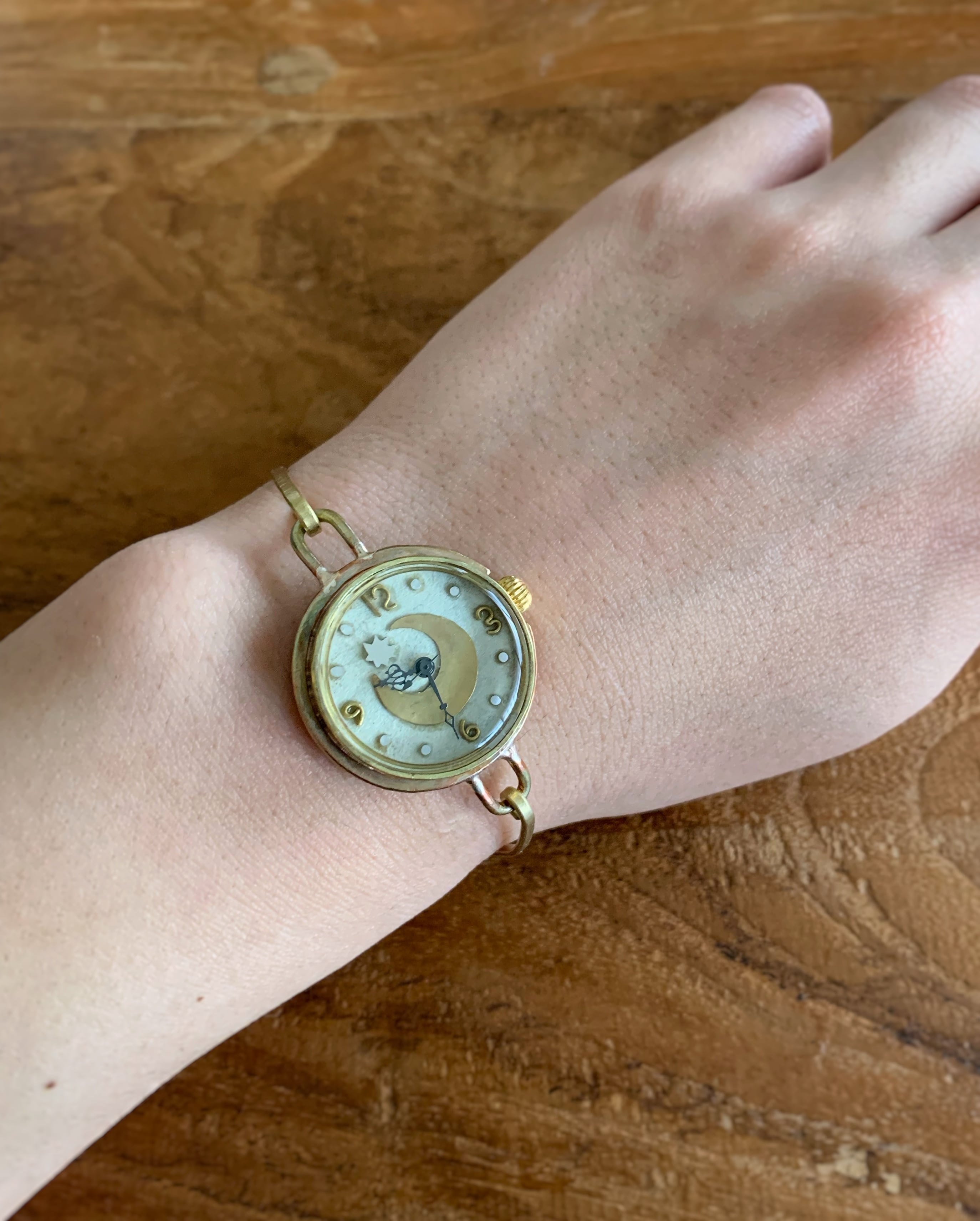 華奢な感じの外装と少しおもちゃ感のある文字盤を意識して作りました。